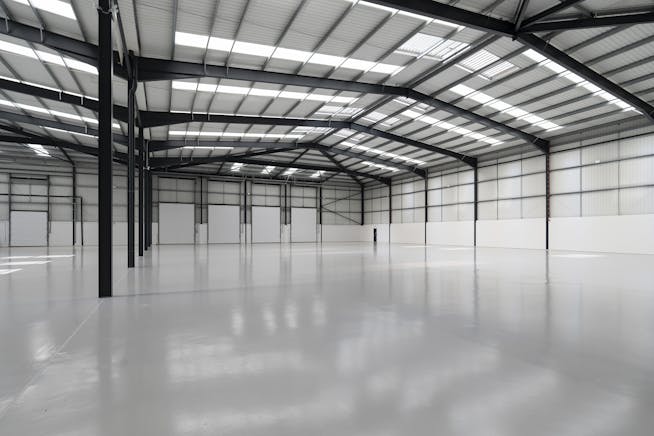 The building is of steel portal frame construction and offers a clear internal height of 8.5m. The elevations are made up of a combination of brick faced blockwork walls and profile metal sheet cladding panels.